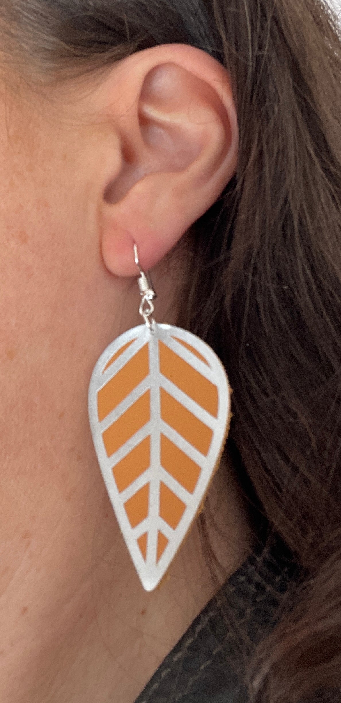 Découvrez les boucles d'oreilles en feuilles faites à la main en cuir de qualité supérieure, suspendues à des crochets en argent 925. Fournies avec des stoppeurs en silicone pour éviter les pertes, elles ajoutent une touche de fantaisie à votre look avec leur design original et leurs dimensions de 3cmx5,5cm. Elles sont parfaitement légères pour un confort tout au long de la journée.