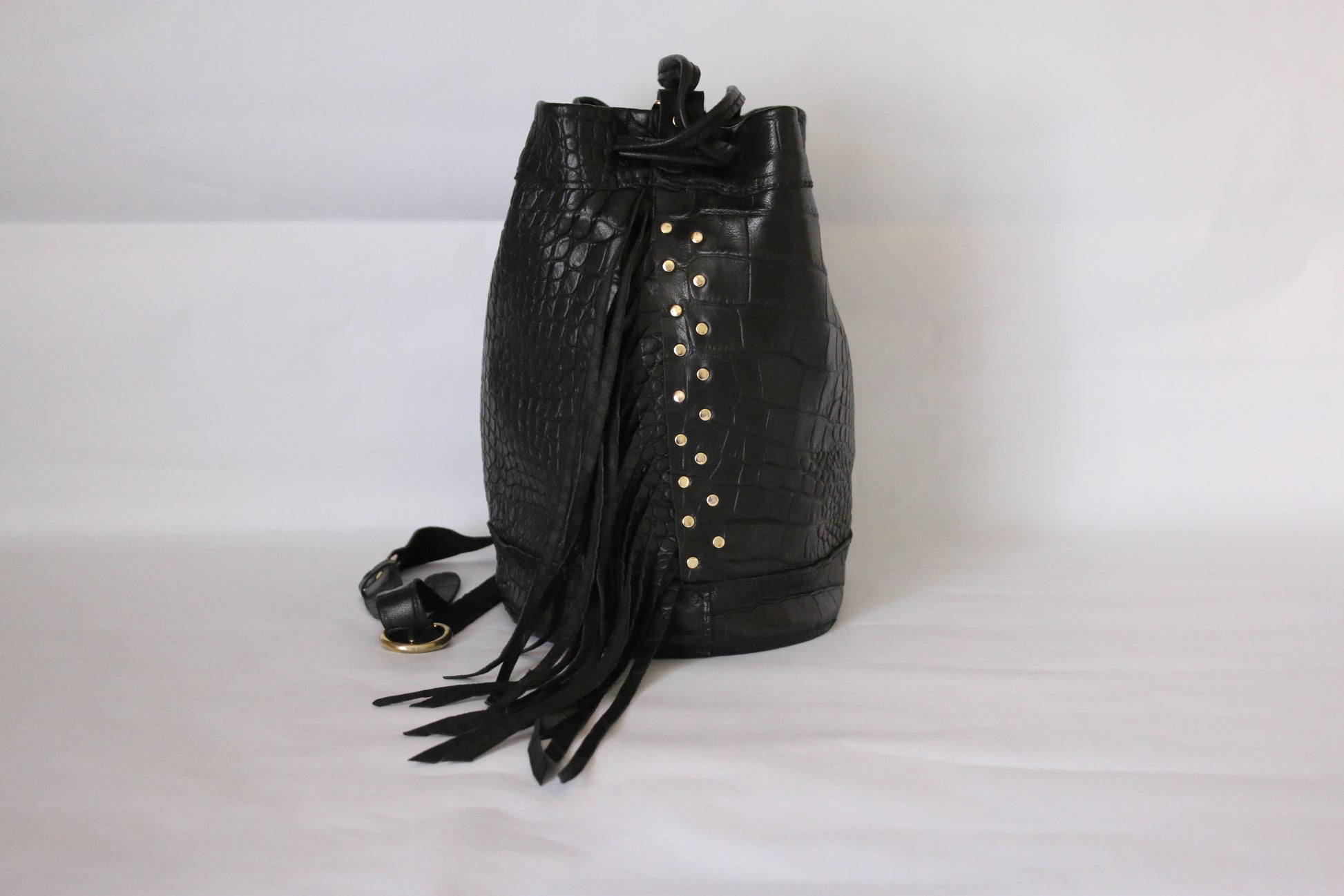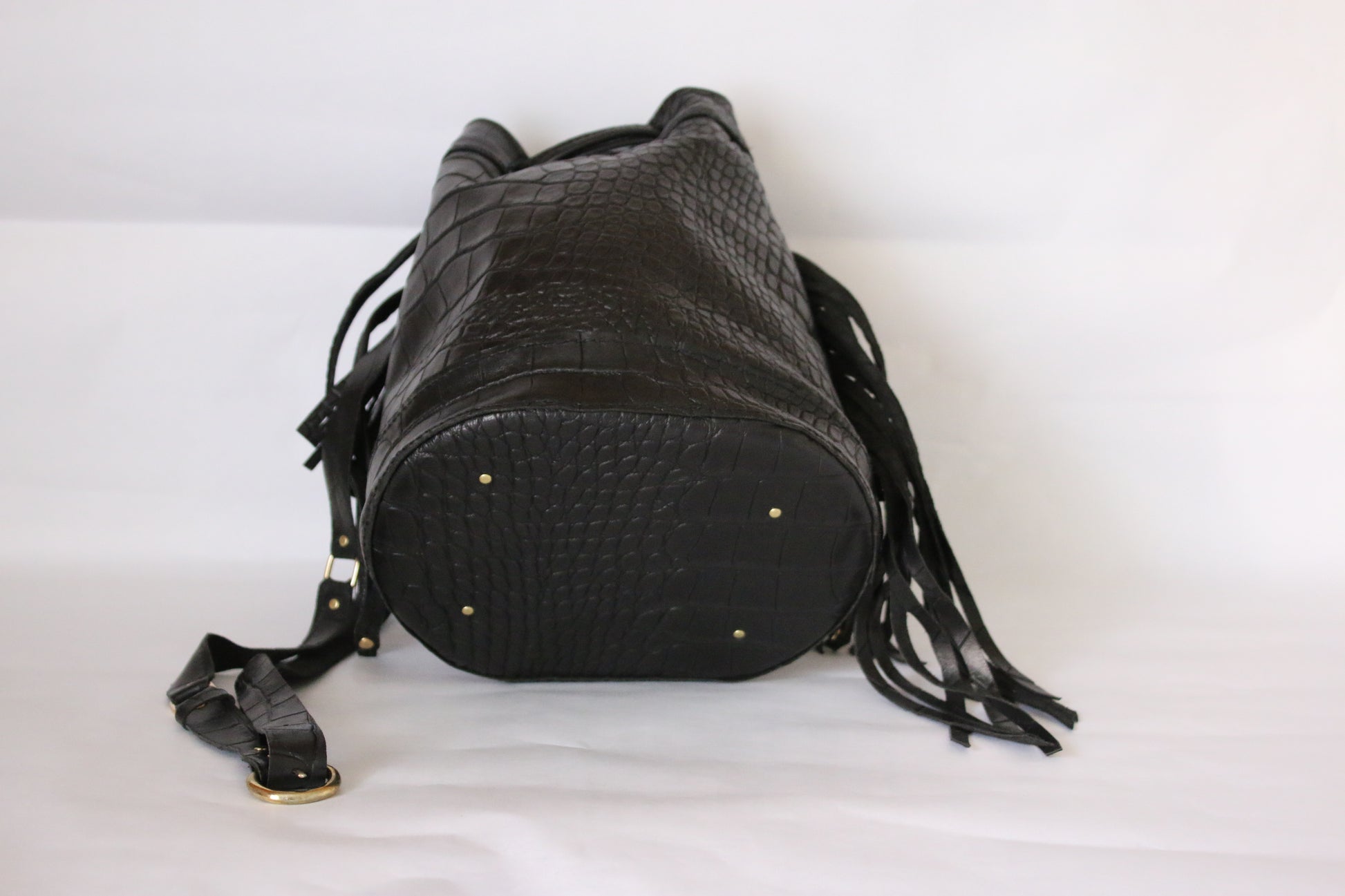 Gardez un look audacieux avec notre sac en cuir et à franges ! Fabriqué en cuir pleine fleur, il mesure L16cmXl26cmXH27 et se décline en Noir. Fermez-le en liens, puis découvrez sa doublure en coton enduit et sa bandoulière réglable (de 85cm à 120cm). Pour un entretien optimal, vaporisez-le avec une bombe imperméabilisante. Avec son style bohème/western, sa qualité de cuir et sa fabrication artisanale, c'est un modèle unique à ne pas manquer !