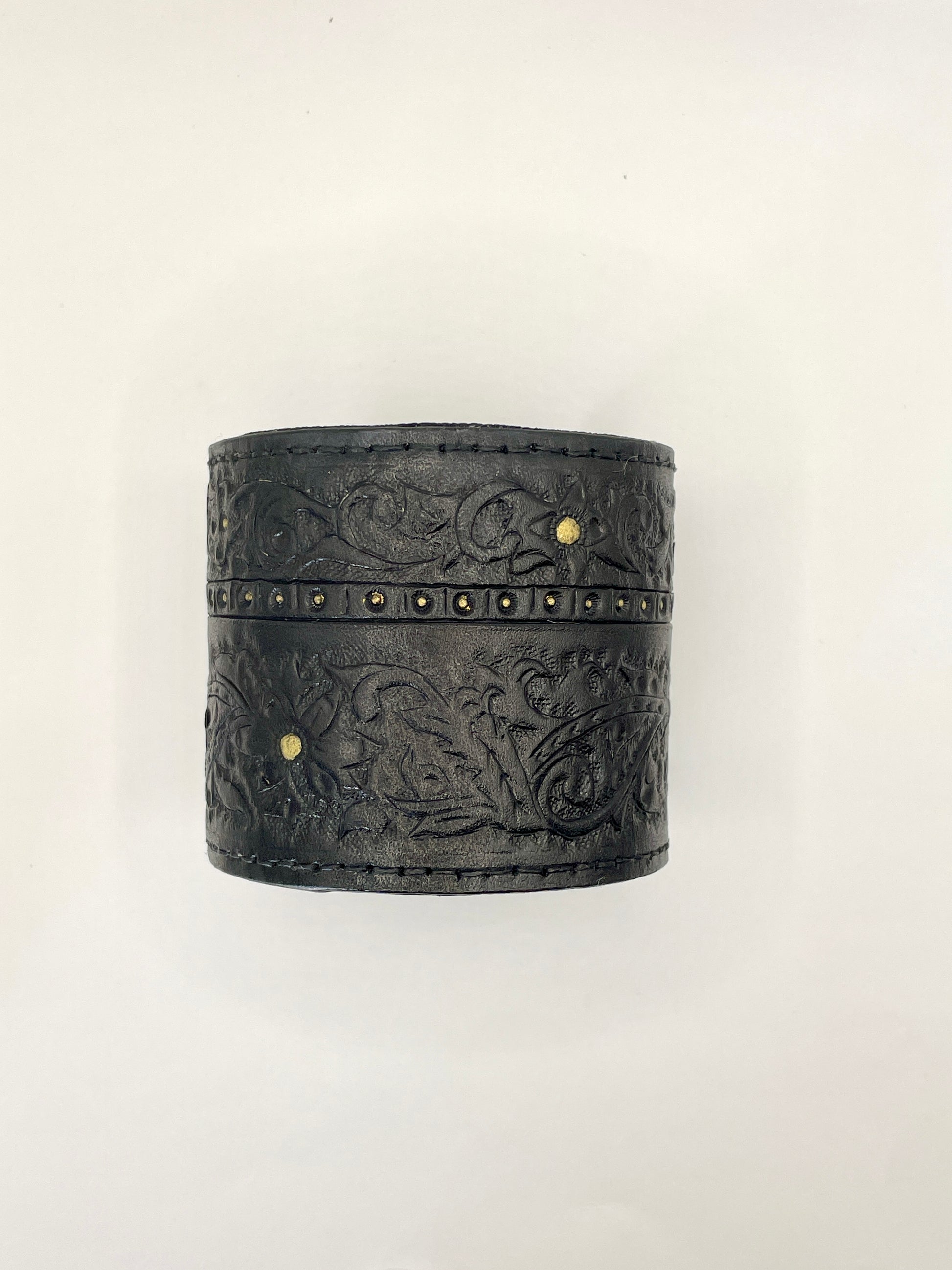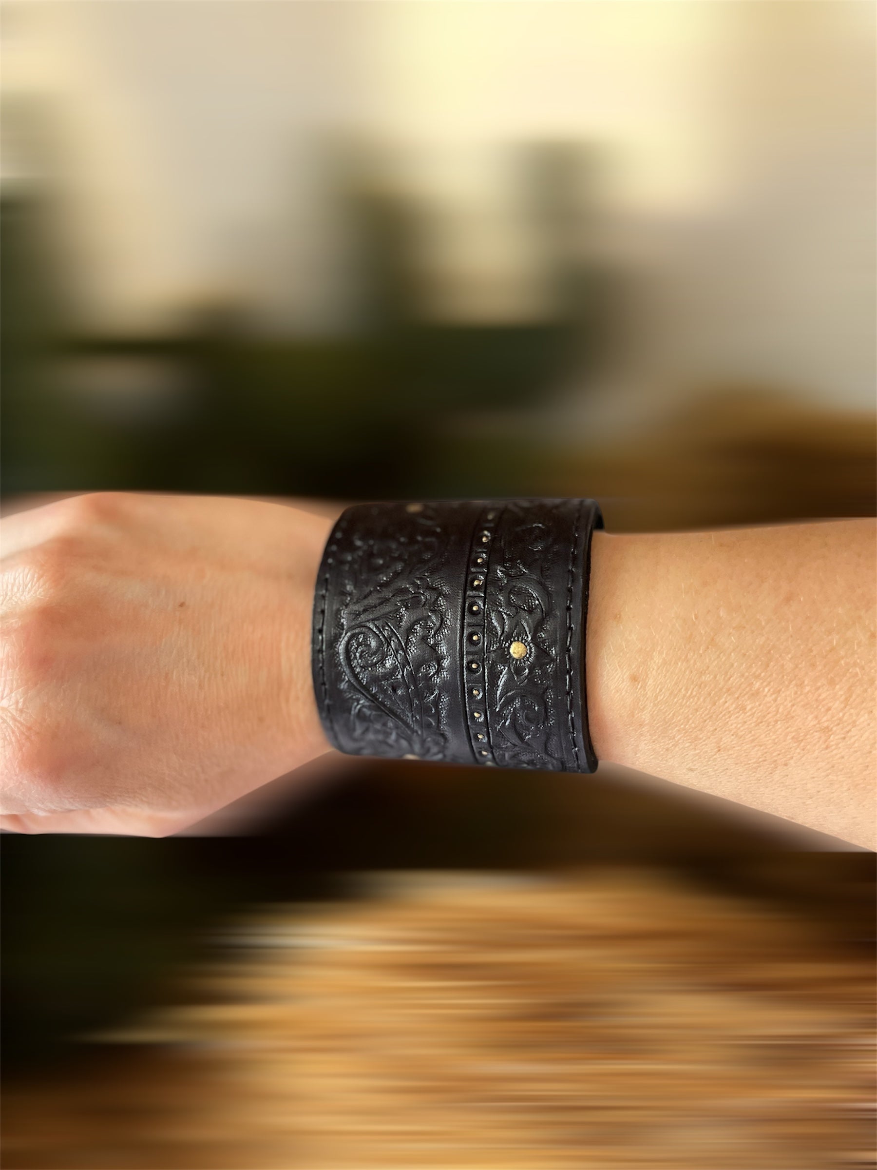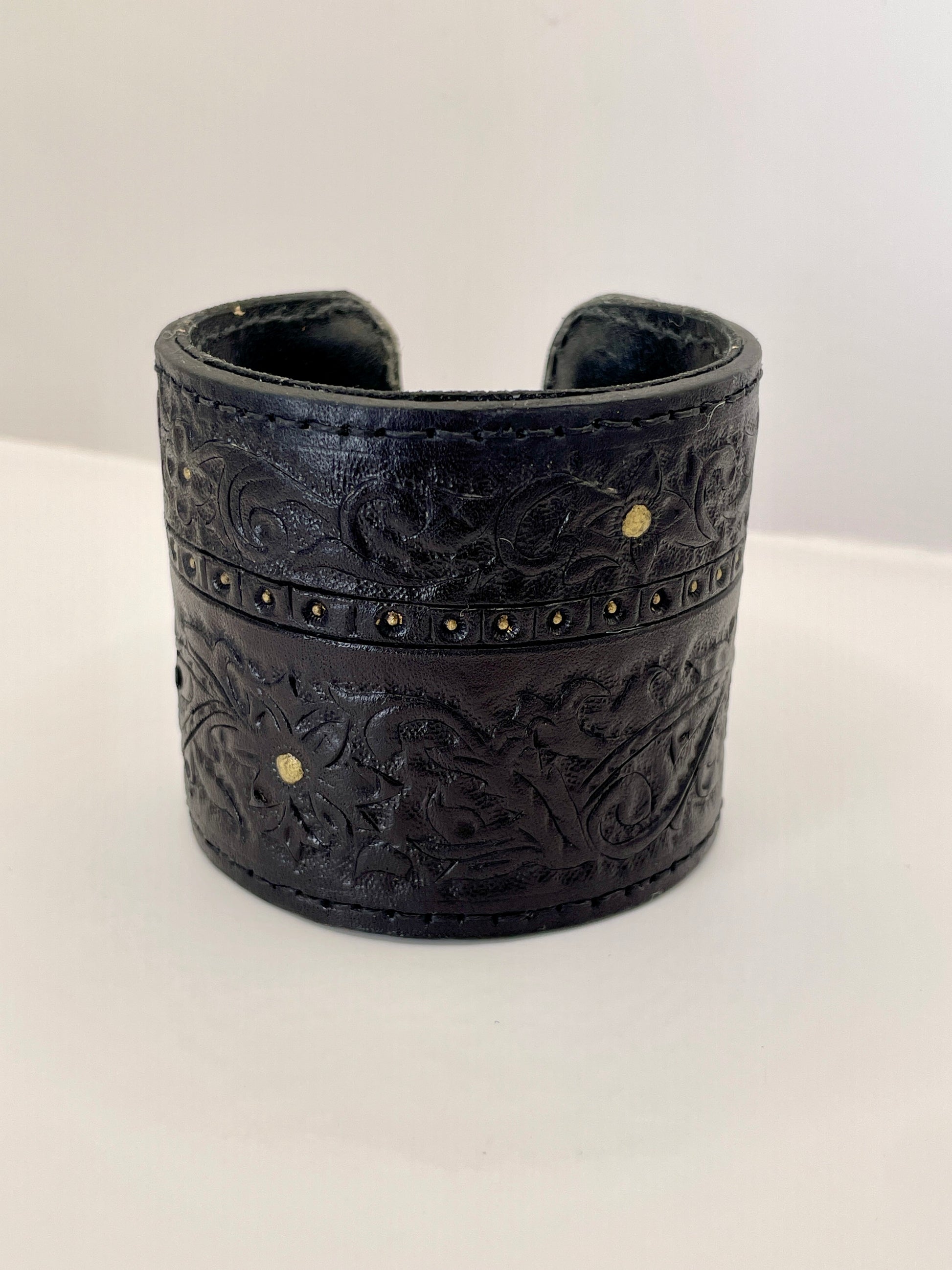 Découvrez cette manchette en cuir de tannage végétal, soigneusement teintée, peinte et cousue à la main. Chaque pièce unique affirme votre style avec caractère, alliant artisanat traditionnel et design provocant pour sublimer votre allure. Osez l’originalité et laissez parler votre audace.