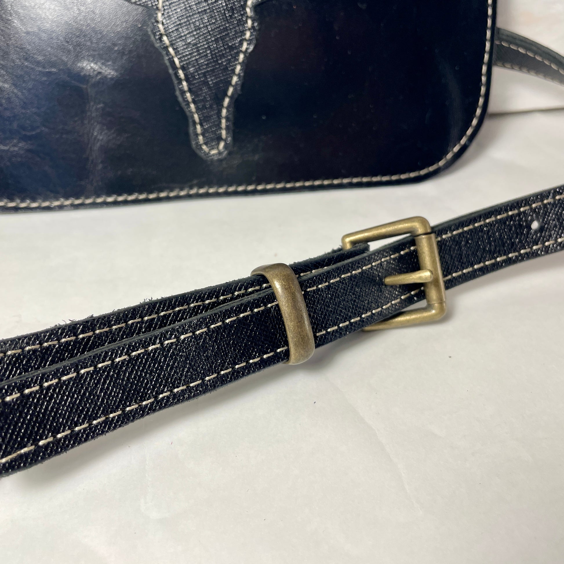 ☆ MATIERE : Cuir de veau noir lisse, tête de bison en croute de vachette imprimée noir