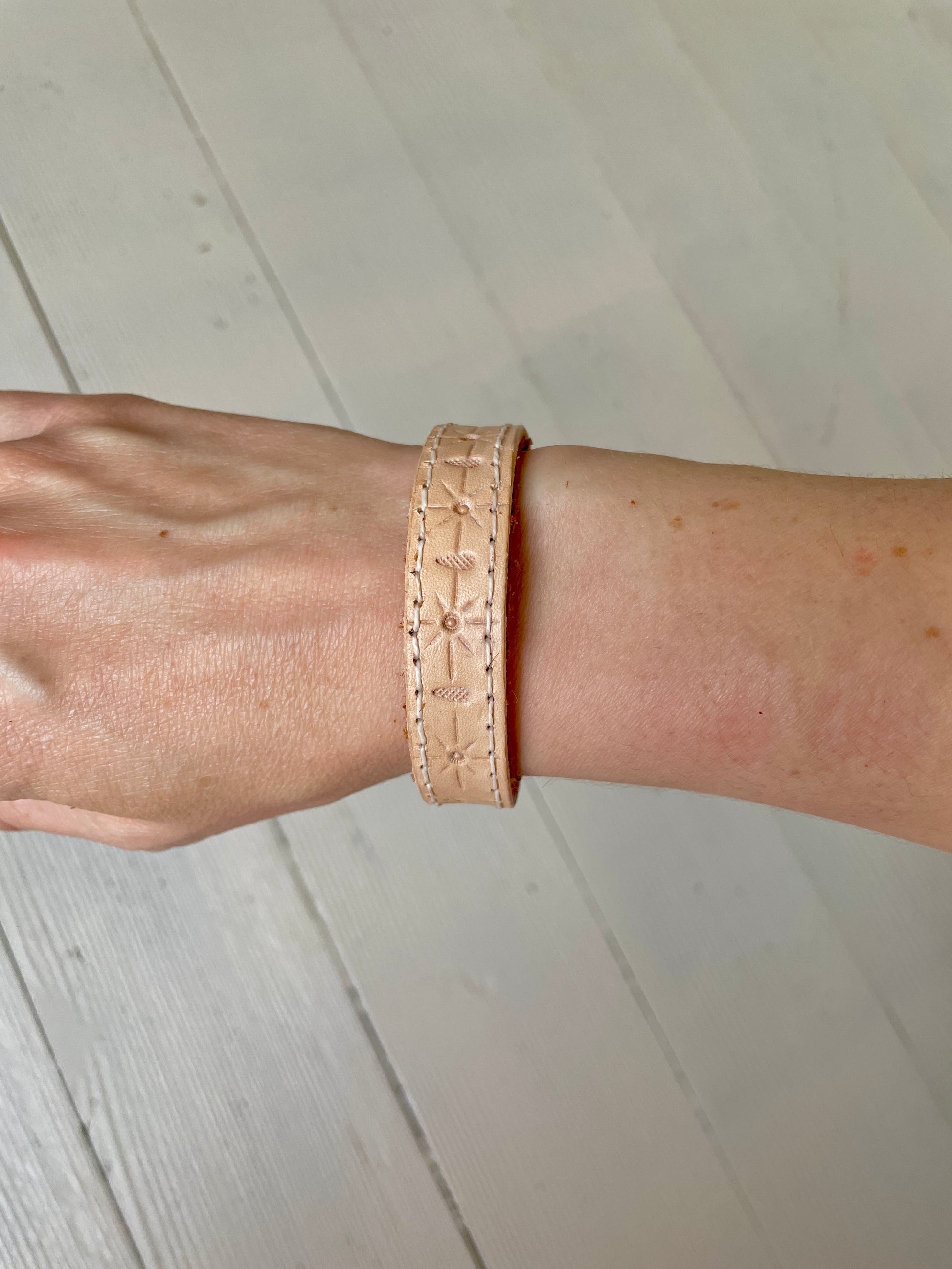Bracelet réglable en cuir de tannage végétal fait et cousu à la main