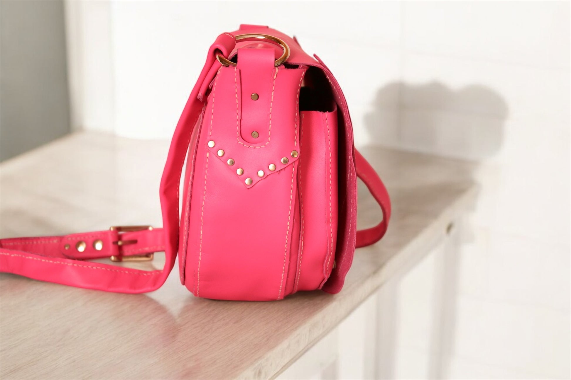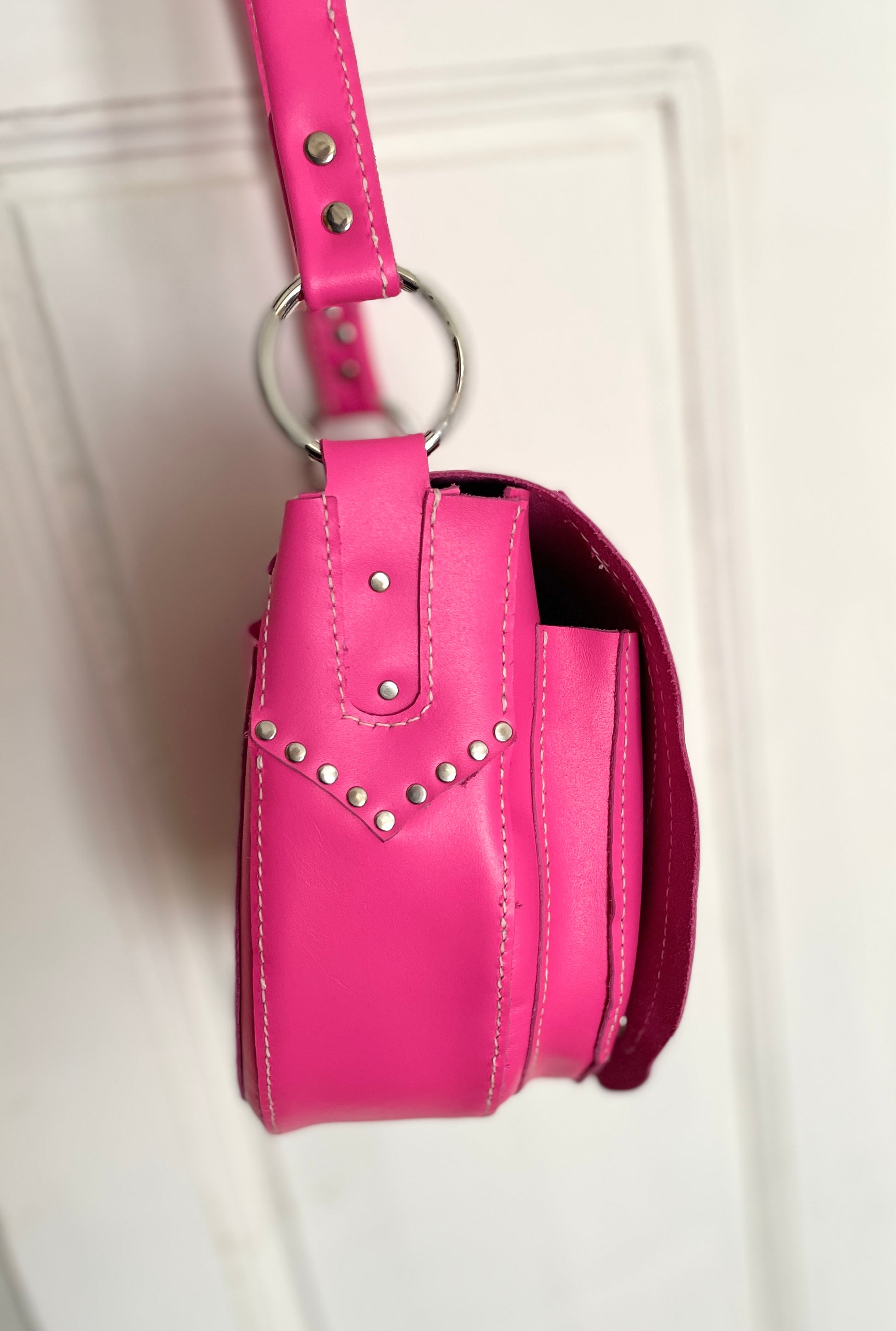 Découvrez le SANTA FE, entièrement cousu à la main avec du cuir de qualité. Avec sa bandoulière réglable, ce sac au style bohème/western est un véritable atout de mode artisanale et unique. Nourrissez-le avec une crème hydratante tous les 6 mois pour le garder en parfait état.